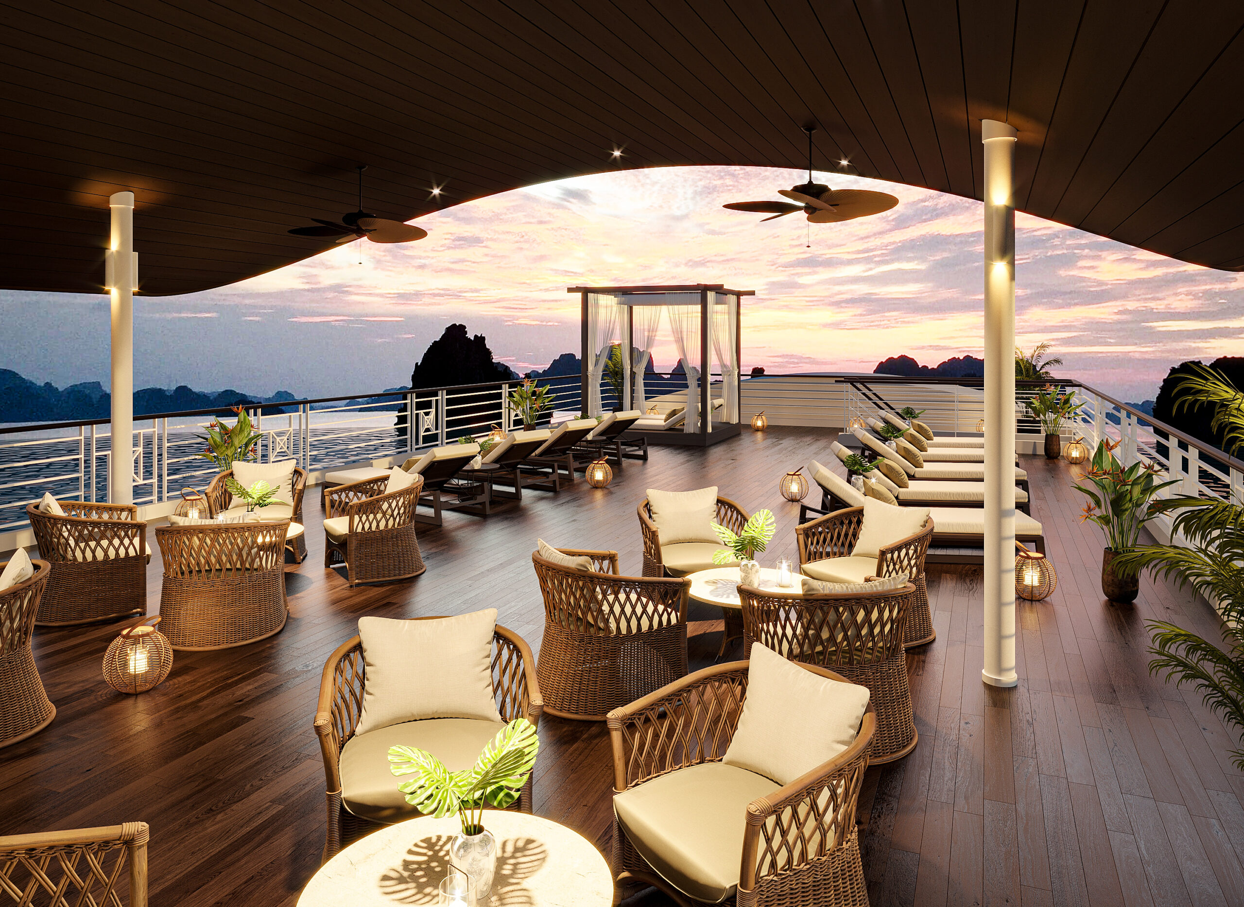 Tea has been a central cultural feature of East Asia for millennia, and Vietnam is one of the earliest tea-drinking nations in the world. Over thousands of years, Vietnamese tradition has refined the art of tea drinking, which is simple, yet elegant, with features that are hard to find anywhere else in the world. Partaking in our tea ceremony, you’ll be having an unforgettable and immersive time on board, and there’s no better way to experience the essence and spirit of Vietnam than being guided by our tea master through the special ceremony.